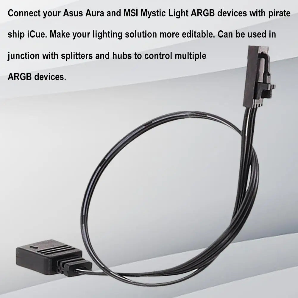 Product use: It enables you to insert a 4-pin ARGB device into a pirate ship RGB hub. Connect your Asus Aura and MSI Mystic Light ARGB devices with pirate ship iCue. Make your lighting solution more editable. Can be used in junction with splitters and hubs to control multiple ARGB devices.