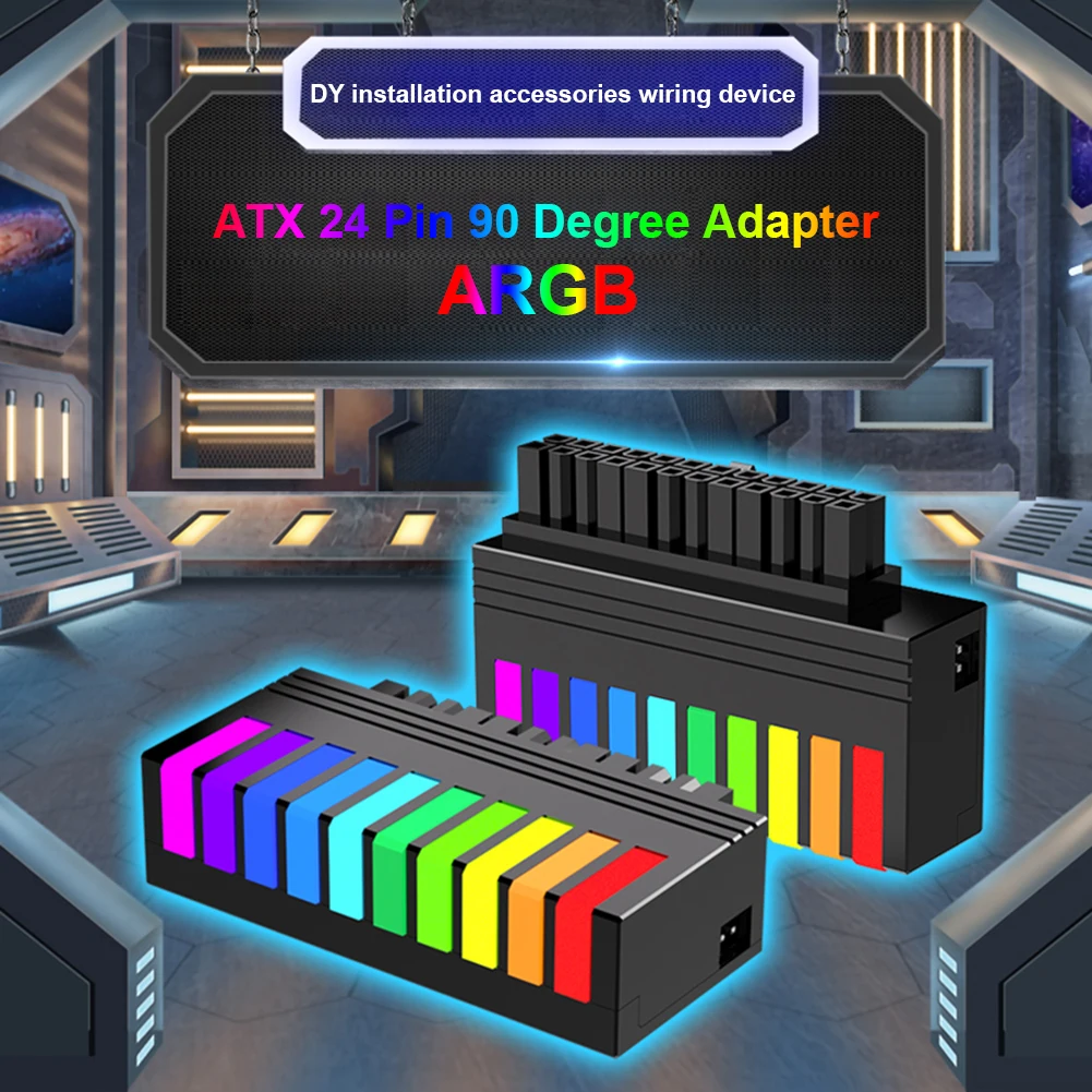 ARGB ATX 24Pin 20Pin to 90° RGB Power Plug Adapter Mainboard Motherboard Power Supply Cable Connectors Modular DIY Mounting